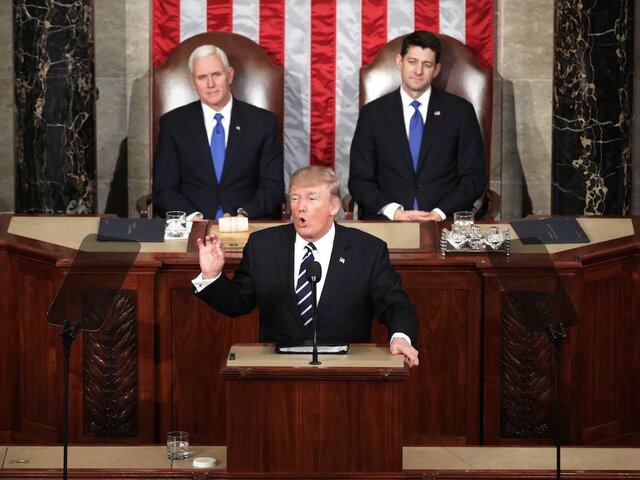 Трамп во время своего первого послания к Конгрессу.
