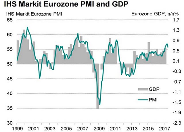 Сводный индекс деловой активности (Purchasing Managers Index, PMI) 19 стран еврозоны снизился с 56,8 пункта в мае до 55,7 пункта в июне.