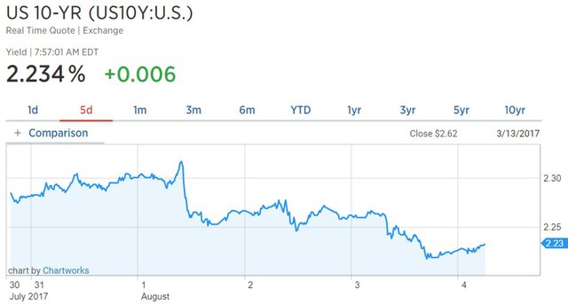 Доходность 10-летних казначейских облигаций составила 2,2282%.