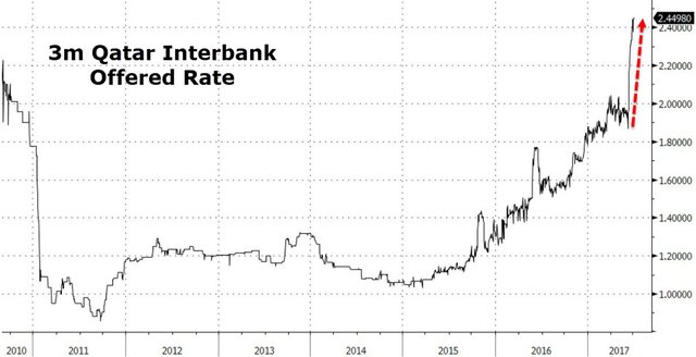 Чтобы увеличить долларовые резервы, банки Катара предлагают премию в 100 б.п. по сравнению с LIBOR, чтобы привлечь доллары региональных банков. Это на 80 б.п. выше ставки до кризиса.