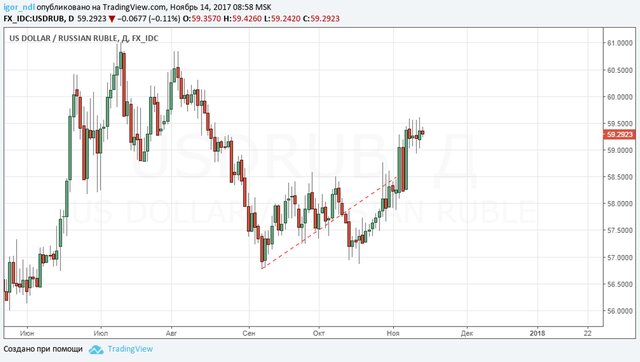 Добавим, рубль дешевеет с начала октября и в паре с долларом сейчас торгуется вблизи отметки 59,5 руб. за единицу американской валюты.
