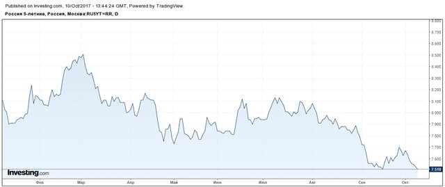 На вторичном рынке наиболее активным спросом пользуются более короткие бумаги. Сейчас доходность пятилетних ОФЗ тестирует новые локальные минимумы.