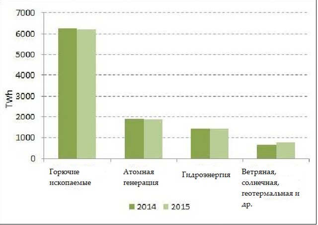 Доля объема электрогенерации в странах ОЭСР за счет возобновляемых ресурсов, за исключением гидрогенерации и сгораемых возобновляемых ресурсов, выросла до 21.5% по сравнению с 20.6% в 2014 году.