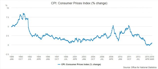 Инфляция в Великобритании с 2013 г. останется ниже целевого уровня Банка Англии, составляющего 2%. По прогнозам ЦБ, показатель составит 1,2% в I квартале 2017 г., хотя ранее ожидалось повышение инфляции до 1,5% к указанному периоду.