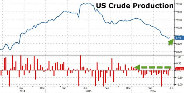 По данным Минэнерго США, объем добычи за прошедшую неделю вырос на 10 тыс. баррелей в сутки. Впрочем, весь этот рост обеспечила Аляска, где добыча выросла на 18 тыс. баррелей в сутки, а вот в материковых штатах добыча нефти снизилась на 8 тыс. баррелей - до минимума с октября 2014 г. К тому же существенно сократились запасы - сразу на 3 млн баррелей.