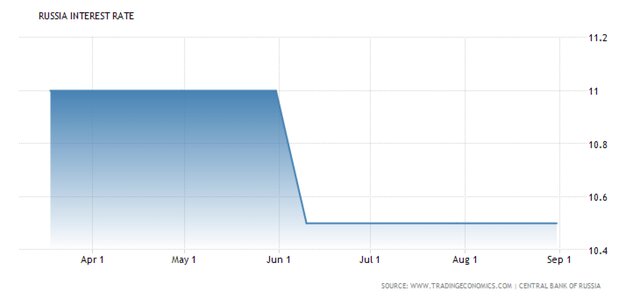 Денежно-кредитная политика Банка России остаётся умеренно-жёсткой и будет такой в дальнейшем. Это означает, что процентные ставки в экономике, включая ключевую, будут на несколько процентных пунктов превышать инфляцию. Это необходимо для того, чтобы и инфляция, и инфляционные ожидания продолжали снижаться и надёжно закрепились на низком уровне.Последний раз Банк России снизил ставку на июньском заседании - с 11% до 10,5%.