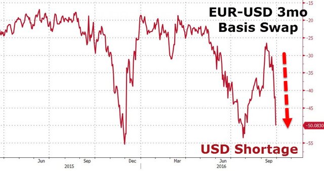 И если участники рынка продолжат выводить из Deutsche Bank деньги, то проблема станет намного острее. Да и к тому же, если все хорошо, как уверяют европейские власти, почему базисные свопы, указывающие на потребность европейских банков в долларах, сигнализируют о резком дефиците ликвидности?