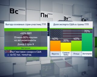 ТТП покрывает 40% мировой экономики. Только для американских экспортеров будут отменены 18 тыс. индивидуальных таможенных пошлин. То же самое получат и компании остальных 11 стран-участников соглашения. Тем не менее краткосрочные выгоды ТТП будут практически незаметными. Согласно независимой оценке через первые 10 лет договор увеличит экспорт товаров и услуг для всех его членов всего на $308 млрд. В 2012-2013 гг. глобальная торговля товаров и услуг росла в среднем на более чем $1 трлн в год.