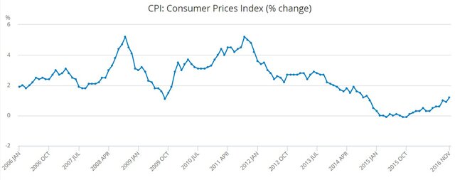Потребительские цены в Великобритании в ноябре 2016 г. выросли на 1,2% в годовом выражении, максимальными темпами с октября 2014 г., свидетельствуют данные Национального статистического управления (ONS) страны.Рост цен относительно октября составил 0,2%.