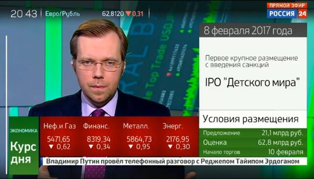 IPO "Детского мира" показало, что кризис на рынке IPO в России завершен, заявил в интервью экономическому обозревателю Алексею Бобровском в программе "Курс дня". Инвесторы спешат в Россию.