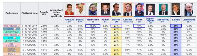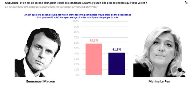 Несмотря на то, что позиции Ле Пен и Мелешона очень похожи, Ле Пен предположительно получит мало поддержки со стороны Мелешона, учитывая, что колоссальные 40% попросту проигнорируют выборы в знак протеста.