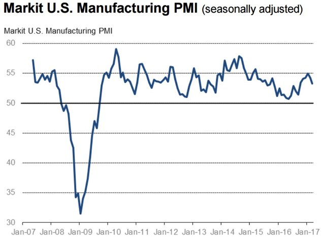 Индекс деловой активности (Purchasing Managers Index, PMI) в производственном секторе США в марте 2017 г. снизился до 53,3 пункта по сравнению с 54,2 пункта месяцем ранее, свидетельствуют окончательные данные исследовательской организации IHS Markit.Показатель достиг 6-месячного максимума, отразив наименьшее улучшение операционных условий с сентября 2016 г.