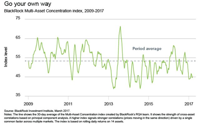 Индекс Multi-Asset Concentration index, который измеряет 14 мировых классов активов, в настоящий момент ниже среднего уровня, который наблюдался после кризиса, согласно анализу инвестиционной компании.