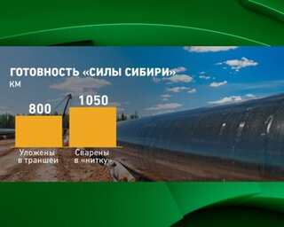 Начало поставок газа в Китай по "Силе Сибири" намечено на 20 декабря 2019 г. Проектная мощность "Силы Сибири" составит 38 млрд куб. м газа в год. Общая протяженность "Силы Сибири" составит 2156 км. Строительство линейной части газопровода включает в себя сварку, укладку в траншею труб, засыпку