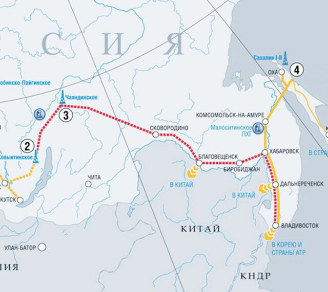 В мае 2014 г. "Газпром" и CNPC подписали договор о поставках российского газа в Китай по восточному маршруту. Китайский участок начинается с китайско-российской границы (город Хэйхе) и заканчивается в Шанхае, пересекая восемь регионов Китая. Протяженность участка составит 3170 км, включая существующий газопровод протяженностью 1800 км.