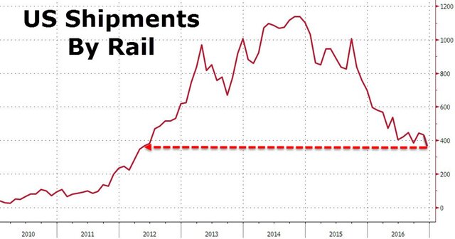 Но есть и еще одна любопытная часть статистики. Дело в том, что поставки нефти и нефтепродуктов в США по железной дороге в декабре снизились до 377 тыс. баррелей в день против 432 тыс. баррелей в декабре, и это минимальное значение с 2012 г.