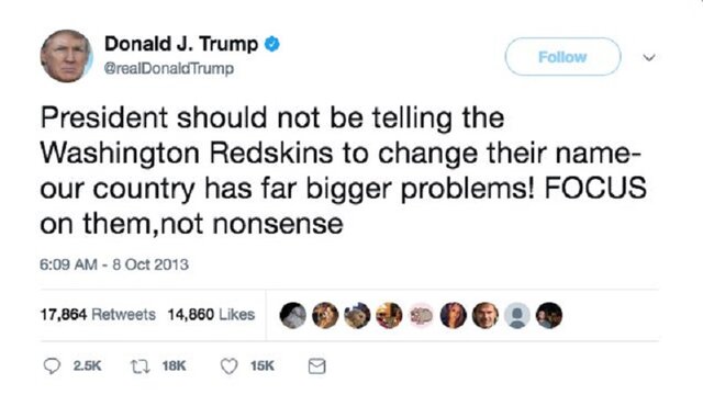 В 2013 году Трамп призывал Обаму не тратить время на спорт, отмечая, что в стране есть проблемы поважнее.