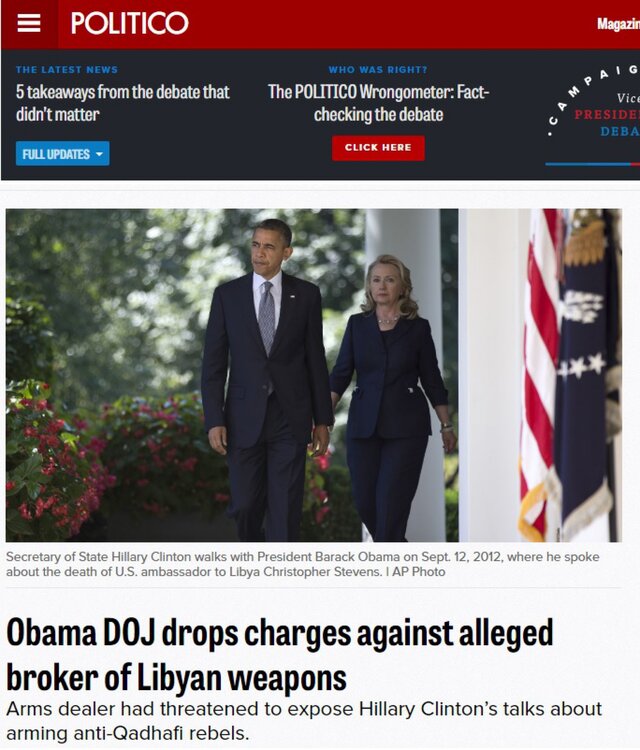 Министерство юстиции США отозвало обвинения против американской частной оружейной компании после предупреждения со стороны главы компании о том, что он расскажет о роли Хиллари Клинтон в поставках оружия боевикам так называемой "умеренной оппозиции" Ливии в 2011 г.