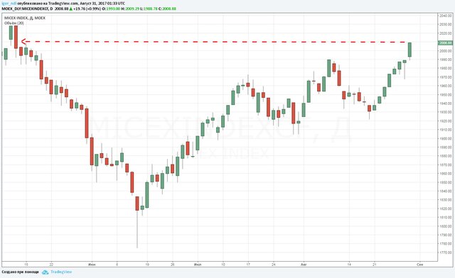 Стоит также добавить, что росту российских индексов не помешали даже падающие цены на нефть. Трейдеры негативно воспринимают последствия урагана "Харви" в США, из-за которого страна на время потеряла четверть нефтеперерабатывающих мощностей. Судя по динамике рынка, они ставят на образование излишков предложения "черного золота".
