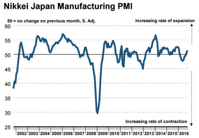Индекс деловой активности (Purchasing Managers Index, PMI) в промышленности Японии в октябре 2016 г. вырос до 51,4 пункта по сравнению с 50,4 пункта в августе, свидетельствуют окончательные данные Markit/Nikkei.Показатель пересмотрен в сторону понижения: предварительные данные указывали на рост PMI в октябре до 51,7 пункта.