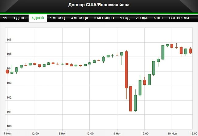 Иена снизилась на 0,5% по отношению к доллару в среду. Ранее иена выросла на 3,8% – максимальными темпами после Brexit, – поскольку потенциальная победа Трампа спровоцировала бегство инвесторов в защитные активы. Позже, однако, победная речь избранного президента несколько успокоила рынок.