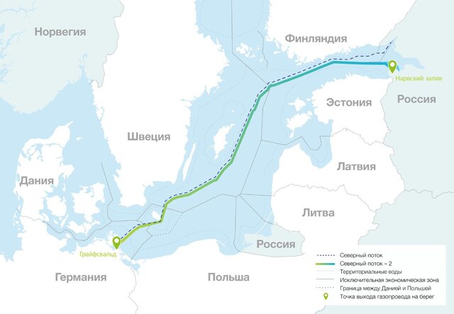 В рамках экспортного проекта "Северный поток-2", являющегося расширением "Северного потока-1", предполагается строительство двух ниток газопровода от побережья России по дну Балтийского моря до Германии.