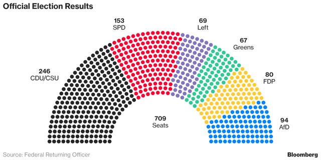 Распределение мест в парламенте Германии после сентябрьских выборов