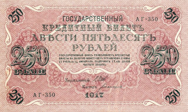Интересно отметить, что в первые месяцы после начала военных действий эмиссионное впрыскивание в народное хозяйство 1 млрд руб. бумажных денег при общей сумме предвоенных бюджетных расходов в 18 млрд не вызвало заметной инфляционной волны. Дело в том, что в народном хозяйстве успешно работали около 500 млн руб. в форме золотых монет и 223 млн руб. разменного серебра. Сразу после начала войны специальным указом был прекращен обмен кредитных билетов на золото; население, которое имело на руках золотые и серебряные монеты, последовало примеру государства и спрятало свой золотой запас в укромные места. На практике это привело к резкому уменьшению количества находившихся в обращении денег, и в хозяйстве возник их острый недостаток. В таких условиях первый миллиард эмиссии кредитных рублей подействовал благотворно: товарно-денежные отношения остались стабильными, несмотря на то, что на рынке отмечались примеры панической закупки хлеба и другого продовольствия.Но во всем нужно не только знать, но и соблюдать меру. В напряженных условиях войны у Министерства финансов для балансирования бюджета – при резко возросших расходах – таких возможностей не было. Перепробовав все возможные способы поиска средств (повышение прямых и косвенных налогов, выпуск внутренних займов, получение кредитов за рубежом), оно в конечном итоге увеличило эмиссию бумажных денег. Если перед войной Госбанк имел право выпустить в обращение кредитные билеты, не обеспеченные золотом, на сумму не более 300 млн руб., то в июне 1914 г. эту планку подняли до 1,2 млрд, а в декабре 1916 г. – до 6,5 млрд. На фондовой бирже в качестве средства оплаты за поставки военной продукции стали использоваться государственные казначейские обязательства (ГКО), хорошо известные россиянам по кризису 1998 г. В условиях войны указанные меры не привели к дефолту, но увеличили в период с 1914 по 1916 г. общее количество денежных знаков в обращении в 3,6 раза. В итоге цены на продукцию промышленности повысились в 2,8 раза, цены на хлеб – в 2,3 раза. К концу 1916 г. при общем росте числа денежных знаков возникла острая нехватка серебряных и медных монет. Поскольку бумажные деньги постоянно обесценивались, семьи с невысокими доходами откладывали "на черный день" именно металлические монеты. Но без "мелочи" поддерживать нормальный процесс рыночного товарообмена невозможно, поэтому правительство начало крупными тиражами печатать небольшие по размеру и номинальной стоимости бумажные марки с портретами царей. К концу 1916 г. таких марок было выпущено на 128 млн руб. Полностью бумажное денежное обращение, несомненно, способствовало падению курса кредитного рубля.