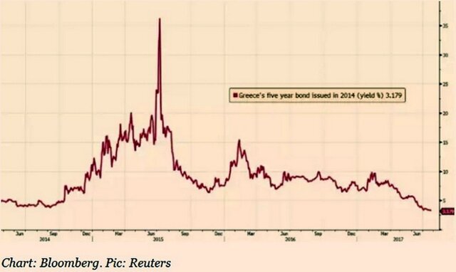 5-летние бонды, выпущенные в 2014 году, со ставкой 4,95% правительство стремится рефинансировать по более низкой ставке в 4,75%. Доходность облигаций достигла 35% два года назад, в то время как правительство боролось с кредиторами за свое будущее в еврозоне. С тех пор цены на облигации значительно выросли, а доходность опустилась до рекордно низкого уровня в 3,2%.