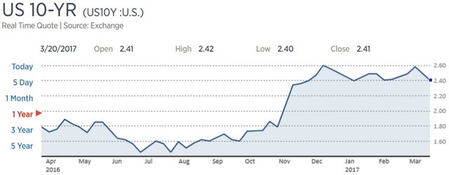 Доходность 10-летних казначейских облигаций США выросла менее чем на 1 базисный пункт до 2,41% после снижения в ходе предыдущих четырех сессий.