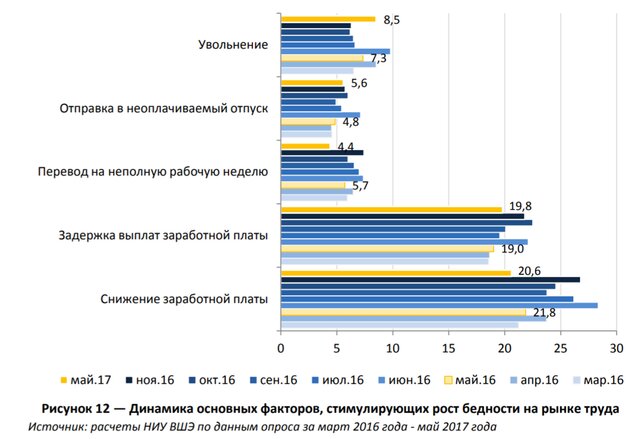 Именно снижение заработной платы является основной причиной роста бедности на рынке труда, второе место занимают задержки с выплатами.