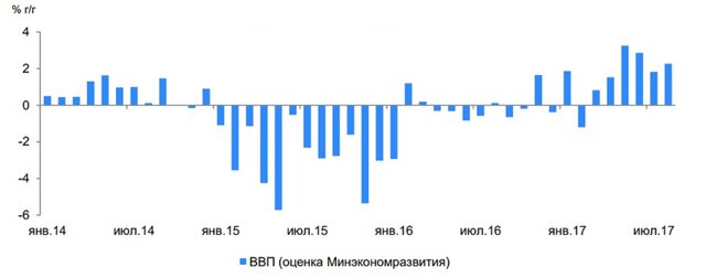 Темпы роста ВВП экономики России за период с января по сентябрь 2017 г. составили 1,8%, в III квартале показатель вырос до 2,2%, сообщило Минэкономразвития РФ 30 октября.