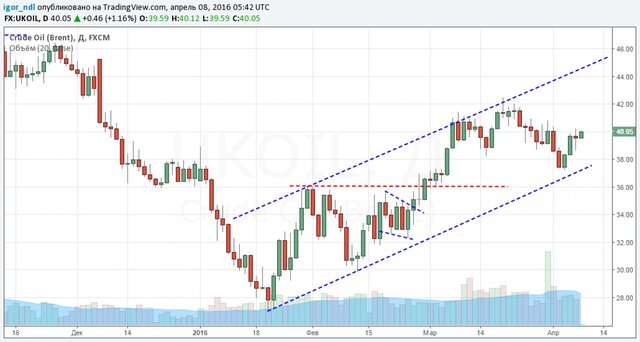 Сейчас пока цена за бочку этой смеси торгуется в районе $40, то есть всего в $2,5 от локальных максимумов. Судя по графику, если ничего не изменится, уже в ближайшие недели мы можем увидеть отметку в $46 за баррель.