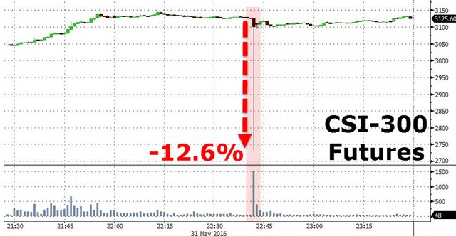 Вскоре после начала торгов, в 10.42 по местному времени, китайские фьючерсы на фондовый индекс CSI-300 рухнули сразу на 12,5% при резком росте объемов торгов.