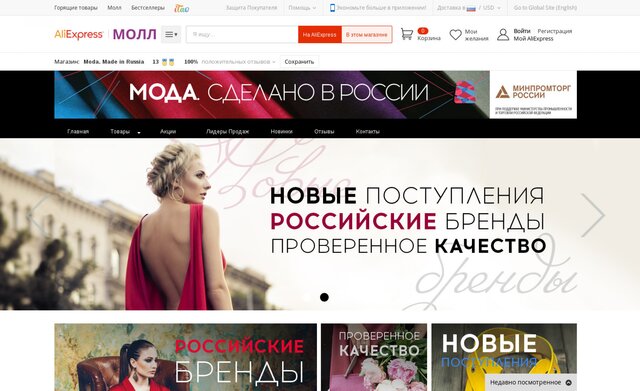 Как следует из документа, за несколько месяцев работы отдельного раздела на AliExpress, где были представлены одежда, обувь и аксессуары российских компаний, покупатели совершили 24 заказа и отложили 552 товара в "Мои желания". При этом посетили проект более 130 тыс. человек. Сейчас страница раздела на AliExpress существует, но многие разделы неактивны, товары не продаются.