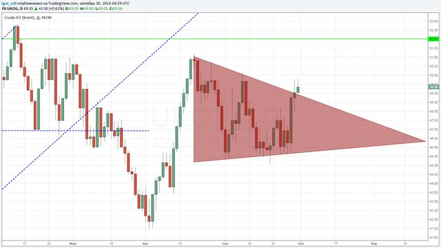 Цены на нефть впервые с начала сентября вплотную приблизились к отметке $50. Трейдеры продолжают отыгрывать решение ОПЕК о заморозке добычи. Не испортил настроение даже вброс одного из информагентств о том, что Ирак может выйти из соглашения.