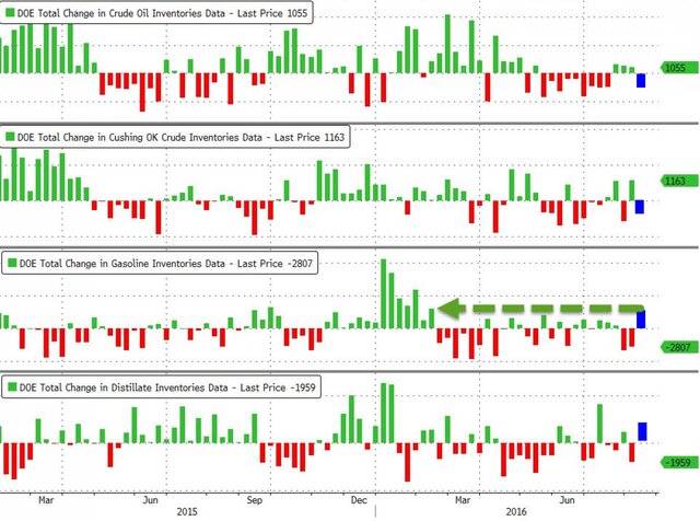 "Я думаю, это возможно. Мы продолжим оценивать поступающие данные по экономике США. Думаю, в настоящий момент американская экономика находится в нормальной форме, потребительская активность довольно высокая, создается много рабочих мест. Мы также видим и определенные слабые моменты, это касается снижения капитальных затрат компаний. Не исключено, что из-за неопределенности, связанной с президентскими выборами в США, показатели капитальных затрат продолжат снижаться".Заявления Дадли поддержали американский доллар и соответственно негативно сказались на динамике нефтяных цен. Далее оставалось дождаться данных по запасам нефти и нефтепродуктов от Американского института нефти (API).