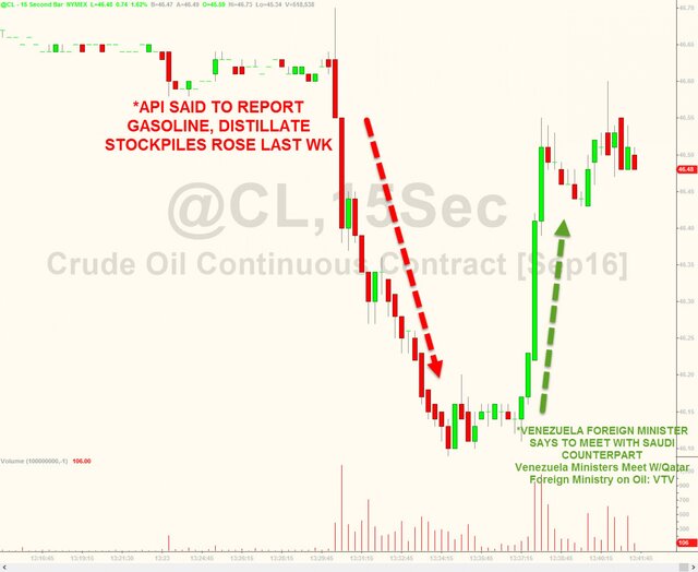 В итоге цены на нефть пошли вниз. Впрочем, это был еще не конец. Стало известно, что министр нефти Венесуэлы собирается провести встречу со своим саудовским коллегой. Учитывая, что сейчас широко обсуждается встреча нефтедобывающих стран по вопросу заморозки добычи, трейдеры восприняли это сообщение позитивно, и на этот раз цены уже пошли вверх.