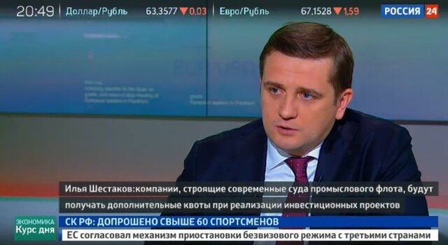 Глава Росрыболовства Илья Шестаков в интервью в программе "Курс дня" назвал главной проблемой российского рыболовства стареющий флот.