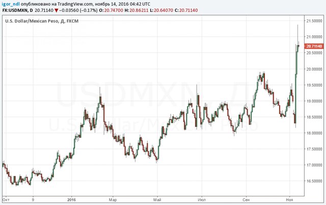 Впрочем, за последние несколько дней мексиканская валюта уже успела неоднократно обновить исторический минимум, так что дальнейшее падение вовсе не гарантировано. В конце концов, рынок уже заложил в котировки самые неблагоприятные варианты развития. Кстати, возможно, Мексика даже рада такому стечению обстоятельств, ведь в условиях падения нефтяных цен, более слабая валюта повышает экспортные доходы.
