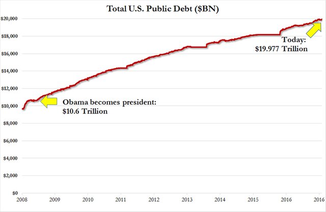 Но процесс уже было не остановить, и Обама со своей администрацией за 8 лет правления решили повторить "успех" Буша и также нарастить долг с $10 до $20 трлн.