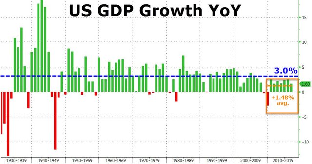 Барак Обама стал первым в истории США президентом, при котором ВВП страны ни разу не рос более чем на 3%.