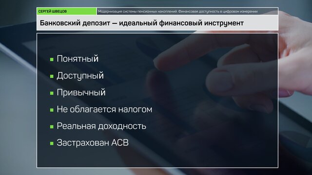 "Мы должны стремиться к тому, чтобы для гражданина финансовый рынок был чем-то похож на медицину. Мы ходим в аптеки, поликлиники, делаем профилактику, покупаем таблетки, делаем операции, все это порождено нашими потребностями в улучшении здоровья, в продолжении жизни. И финансовый рынок – он такой же. Здесь есть разные инструменты, есть риски. Если мы с вами выпили не те таблетки, у нас есть шанс оказаться в малометражной квартире из дерева, то же самое на финансовом рынке: если мы воспользовались не тем инструментом, есть шанс оказаться с пустым кошельком, да еще и остаться в долгу. С другой стороны, если мы правильно знаем, что нам нужно, то это помогает решить квартирный вопрос, купить машину, внеся какие-то небольшие деньги, накопить на старость и так далее".Развитие финансового рынка требует работы по всем фронтам: с одной стороны, должна повышаться финансовая грамотность населения, с другой, должна быть обеспечена доступность услуг и защита прав потребителей. Не стоит идеализировать работников финансовой сферы. Жадность и страх здесь сочетаются в разных пропорциях, и если страха нет, то капиталисты будут наживаться на гражданах. Этого нельзя допустить.