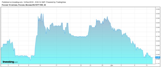 После решения ОПЕК, а затем и независимых производителей нефти, сократить объемы добычи рубль резко укрепился, а вслед за ним снизились и доходности ОФЗ.