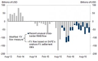 По подсчетам Goldman Sachs, с августа 2015 г. суммарный отток капитала из КНР превысил $1 трлн, а Народный банк Китая сообщает лишь о $630 млрд.
