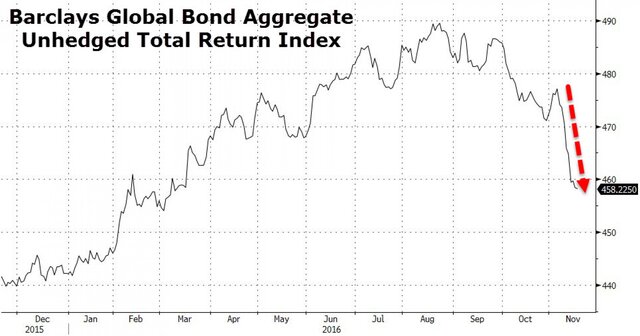 С момента победы Трампа на выборах США прошла всего неделя, а финансовый рынок уже ставит рекорды. Обвал глобальных облигаций стал сильнейшим за последние 26 лет.