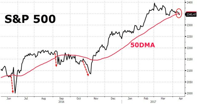 Другие признаки также показывают растущую нервозность инвесторов. Индекс S&P 500 впервые после выборов оказался ниже 50-дневной скользящей средней.