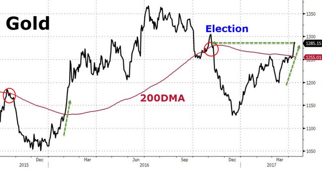 Золото вновь превысило $1300, отыграв все потери после выборов и пробив 200-дневную скользящую среднюю.