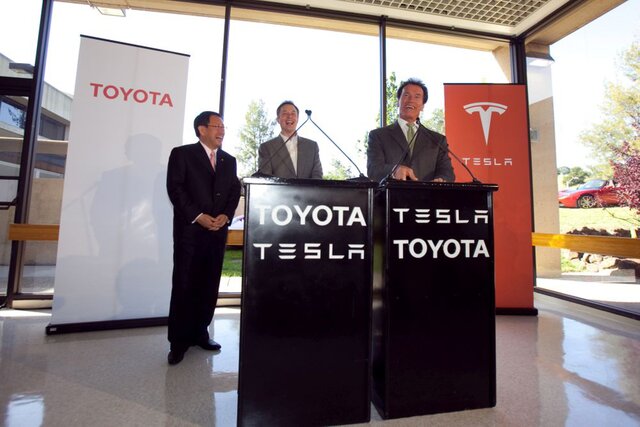 Toyota и Tesla удивили мир, когда две компании объявили об альянсе в мае 2010 года с планом приобретения 3,15% акций Tesla на 4,5 млрд иен ($40,5 млн) для содействия совместной разработке электромобилей.