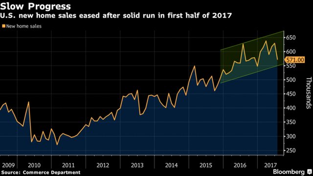 При этом большинство аналитиков, опрошенных агентством Рейтер, ожидали роста показателя на 0,3% до 612 тысяч. Июльский показатель стал самым низким с января этого года. Скорректированы также данные по июнь. В первом месяце лета было в США было продано 630 тыс. новостроек, а не 610 тыс., как сообщалось ранее.